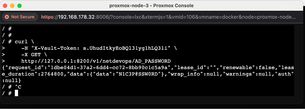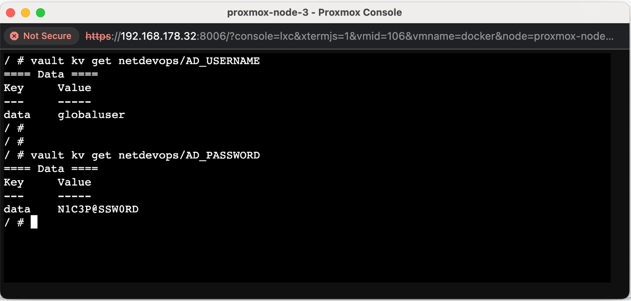 / # vault kv get netdevops/AD_PASSWORD