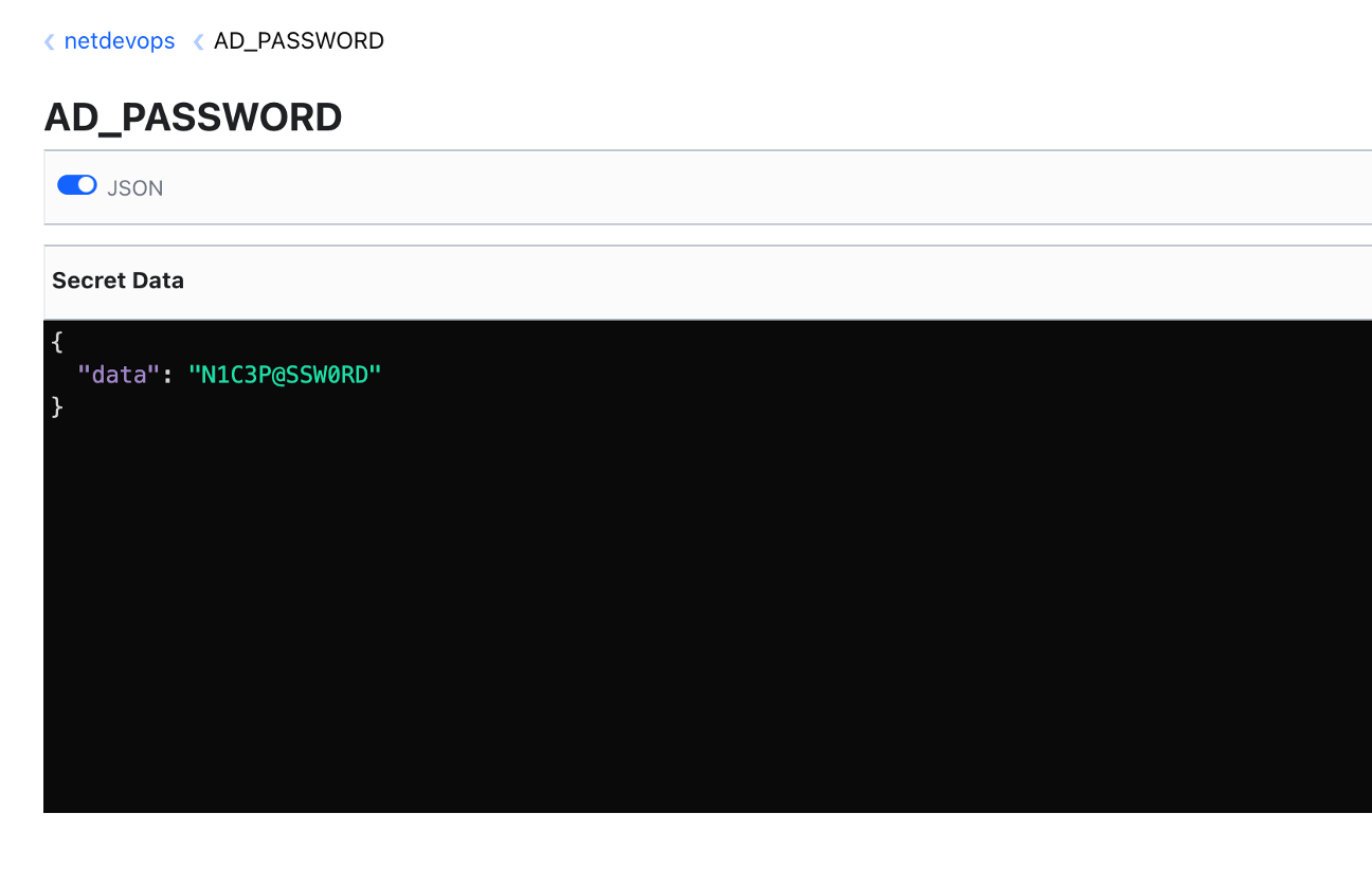 password = get_kv_secret(mount_point="netdevops", path="AD_PASSWORD")